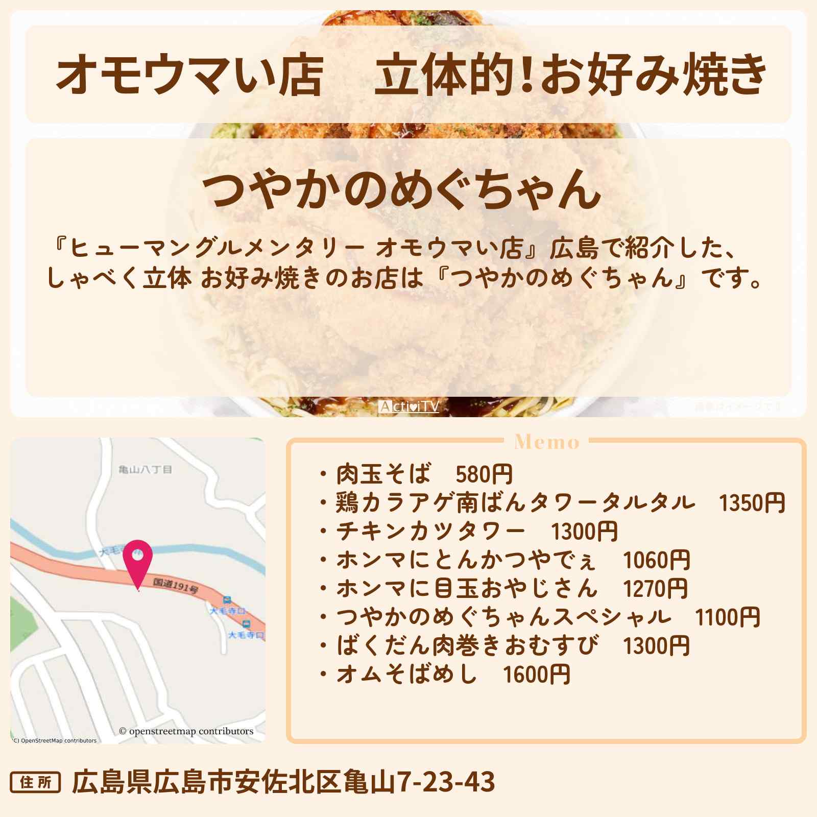 粉もの #お好み焼き#焼きそば#粉もん 広島 【驚愕】このお好み焼き、チキンカツタワーになってるやんけ!#お好み焼き #チキンカツ 2025年12月31日 2025年12月31日 gourmetdesu22 Facebook postはてブLINEPocketFeedly チキンカツタワーで話題のお好み焼き店が『オモウマい店』に登場したというニュースにすぐに行きたくなりました。美味しさだけでなく、店主の努力や工夫が詰まったお料理が楽しめる場所として、多くの人に知ってもらいたいですね。リーズナブルでデカ盛り リピート間違い 広島市に訪れた際は是非ともチェックして下さい #お好み焼き #チキンカツ <関連する記事> 『オモウマい店』お好み焼き店、立体的すぎる…「チキンカツタワー」1300円 店主「だから赤字になんねん」 - 山陽新聞 (出典:山陽新聞) <関連する画像> (出典 食べログ) (出典 マドリエ) (出典 食べログ) (出典 西日本ウォーカー) (出典 マドリエ) (出典 食べログ) (出典 食べログ) (出典 食べログ) (出典 ActiviTV) (出典 食べログ) (出典 食べログ) (出典 Twitter) (出典 西日本ウォーカー) (出典 食べログ) (出典 食べログ) (出典 食べログ) (出典 ActiviTV) <関連する動画> <ツイッターの反応> ピックアップ記事 広告 Facebook postはてブLINEPocketFeedly