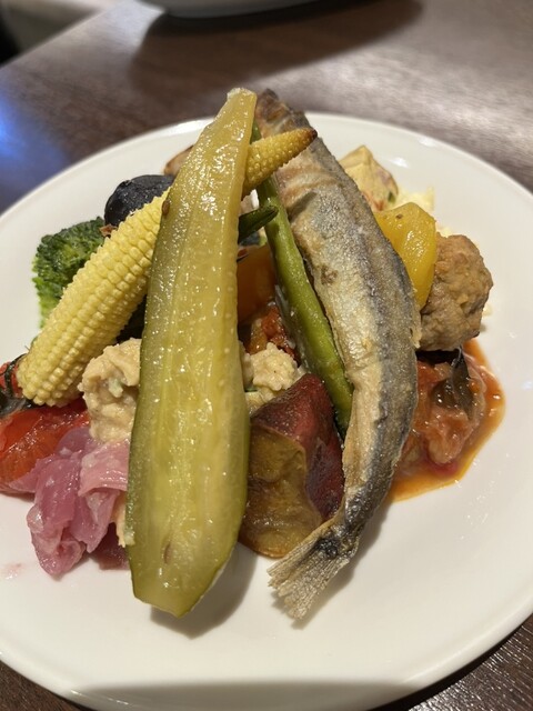 本格的なイタリアンでランチでも前菜から20種類もありパスタも3種類から選べ自家製パン 食後のデザートも何種類も盛り付けられて