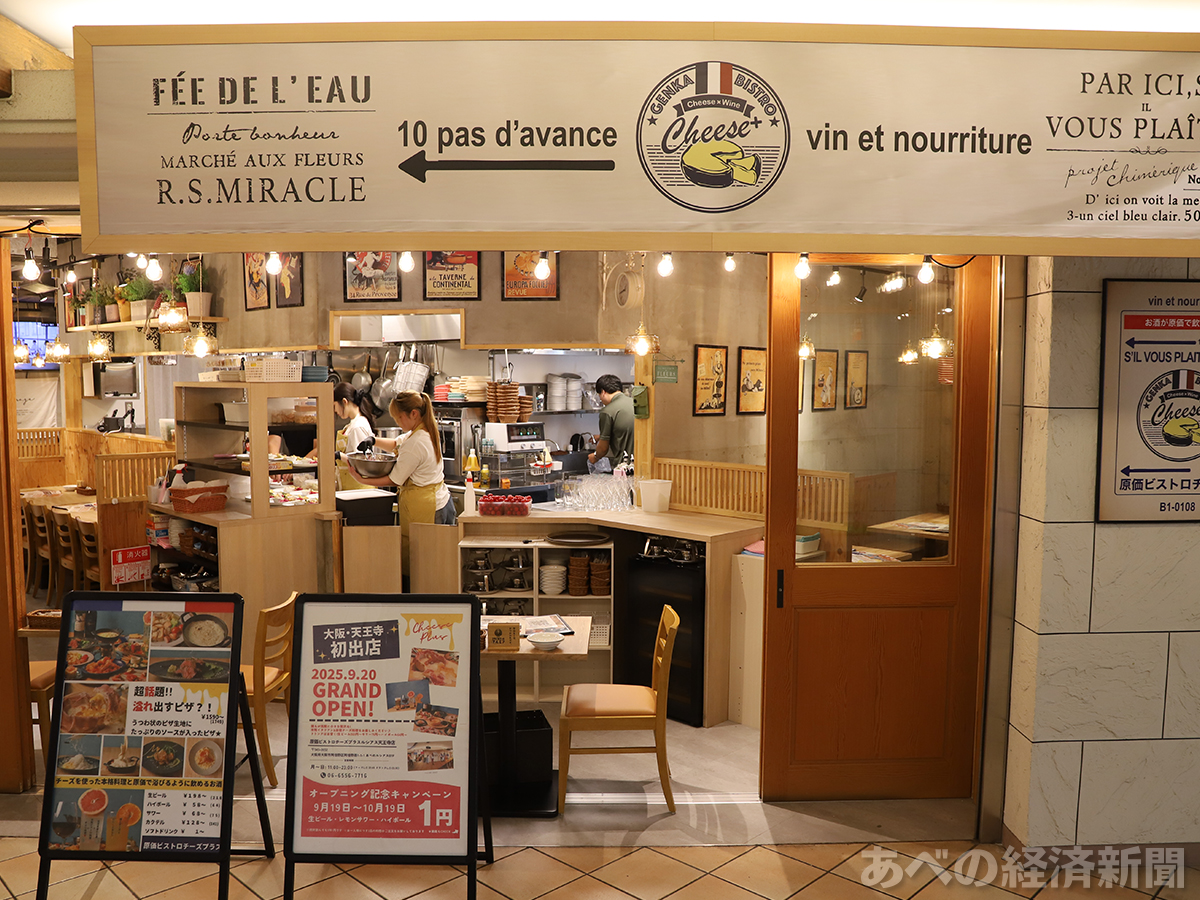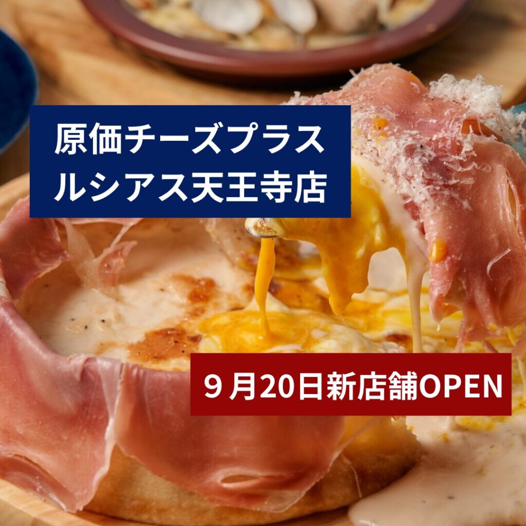 【大阪市阿倍野区】創作チーズ料理と原価でお酒が楽しめるお店「原価ビストロチーズプラス」オープン! …2025年、9月20日(土)、天王寺のルシアスビル地下1階に、「原価ビストロチーズプラス ルシアス天王寺」がオープンしました。関西を中心に名古屋・宮崎など15店… (出典:ぺるたろう) |