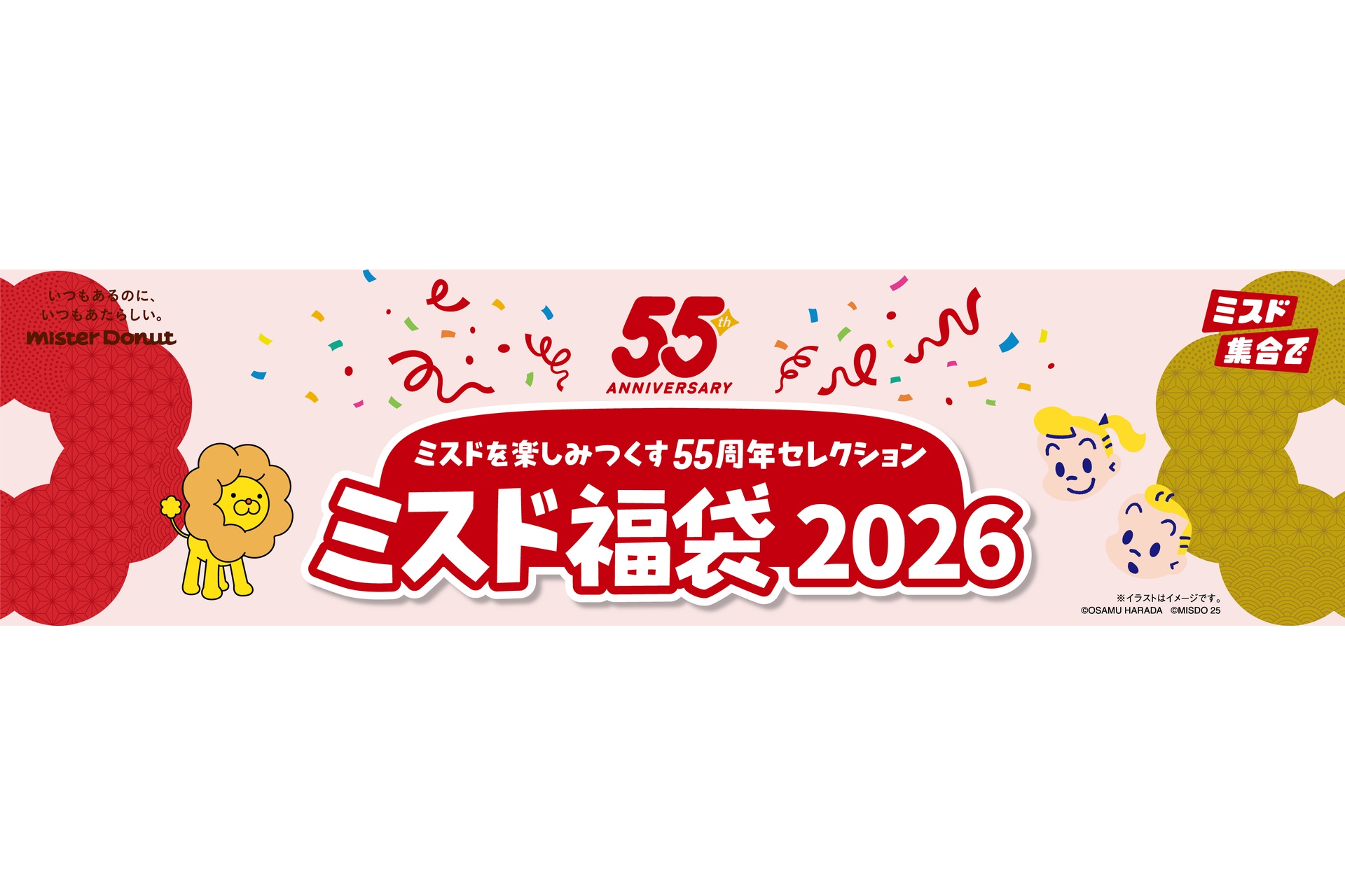 @oricon【ミスドの福袋2026】 ミスタードーナツ、要望に応え ポン・デ・ライオンと仲間たちが登場🦁 ポン・デ・リングのぬいぐるみやトートなど “楽しみつくす55周年セレクション”発表❗️ 🍩ドーナツ引換券 3800円:20個分、6500円:35個分 ▼内容詳細 oricon.co.jp/news/2421056/f… #ミスタードーナツ pic.x.com/wy5tIGh0T6