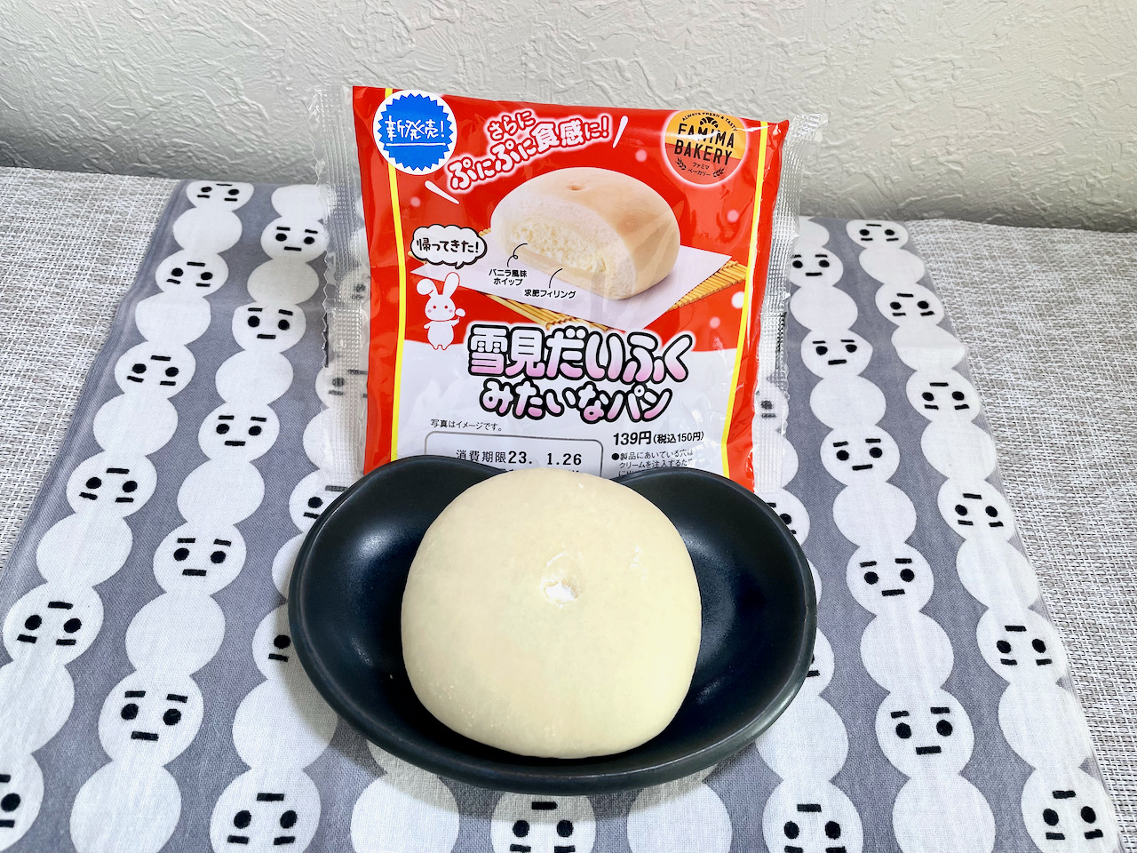 @pnosaruファミマで雪見だいふくみたいなパン買ってきた。一口目は完全に他人だけど食べていくと自称雪見だいふくって感じかな…