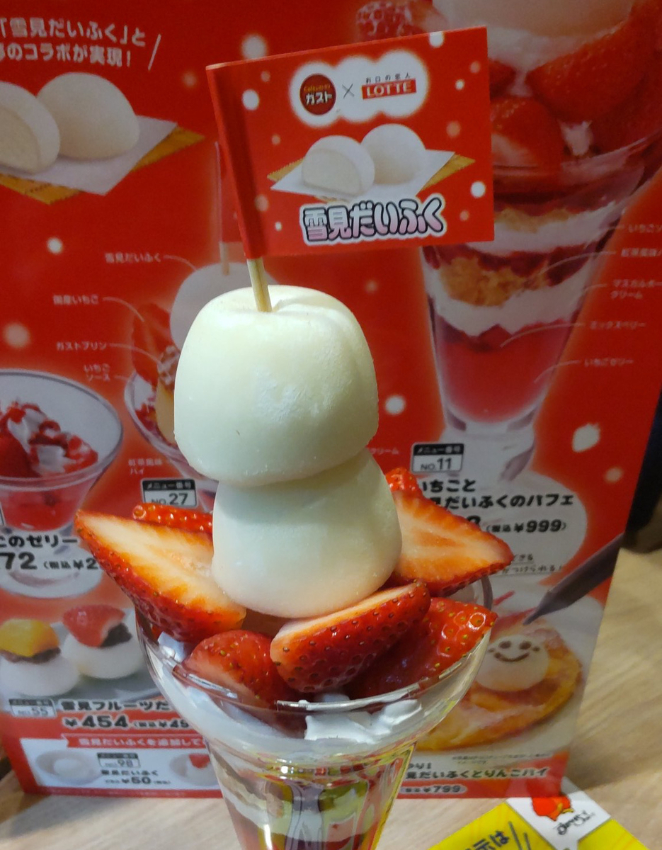@1cream_sodaガスト、いつもちょっと高いよなぁと思うため避けがちだけど、いま雪見だいふくコラボらしくてセンスが良すぎ